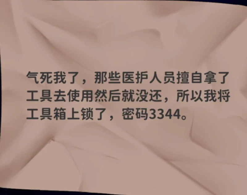 The first thing at the start is opening the toolbox. This password requires combining two paper scraps.