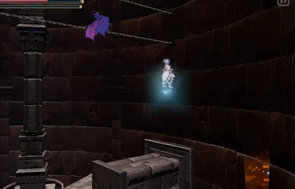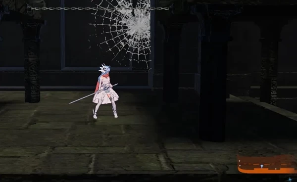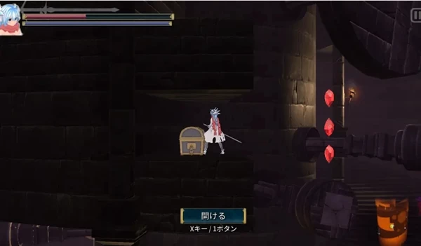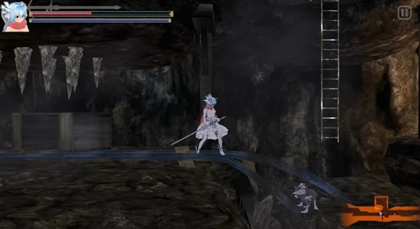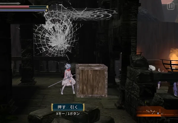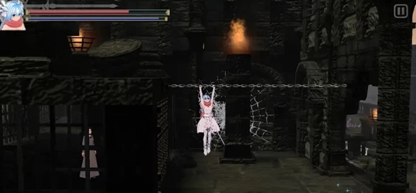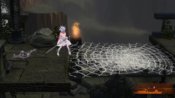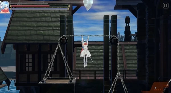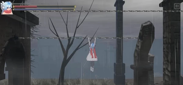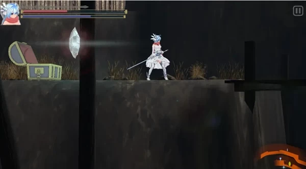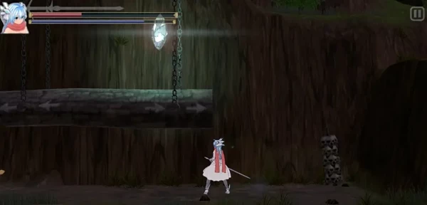 2. See the chain and go up. There's a treasure chest ahead containing an elemental sword, but to avoid trouble, just keep going up. Later, slash through the spider web at the bottom, jump to the right across platforms, and the sword technique is at the end.