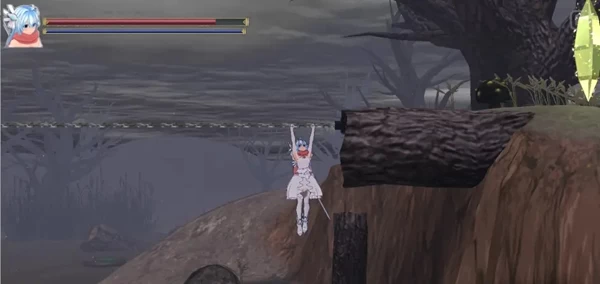 2. Return to the chain and go forward. There's an upward lily pad for progression. Then you'll encounter a mid-point crystal and moving lily pads. Crabs are on the path, and the sword technique is at the end.