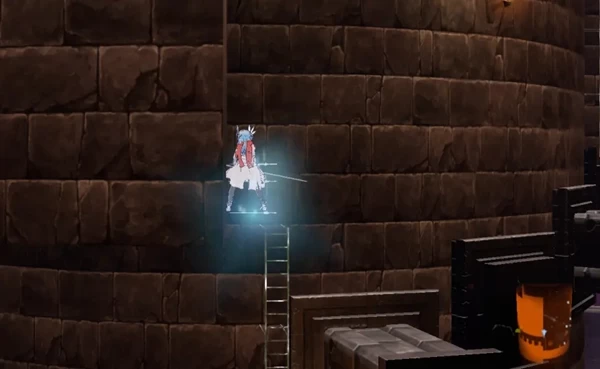 2. Left of the mechanism, build an arrow ladder against the wall to reach a teleportation circle—much easier than hard jumping. The developer even gives you mana potions to cheese it.