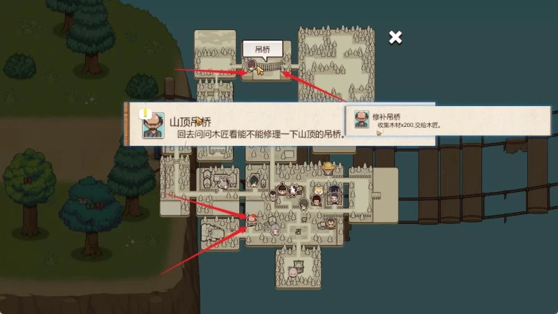 Next, go to the mountain top suspension bridge to accept the bridge repair quest. After talking to the Carpenter, you'll need to submit 200 wood. No rush—just remember this.