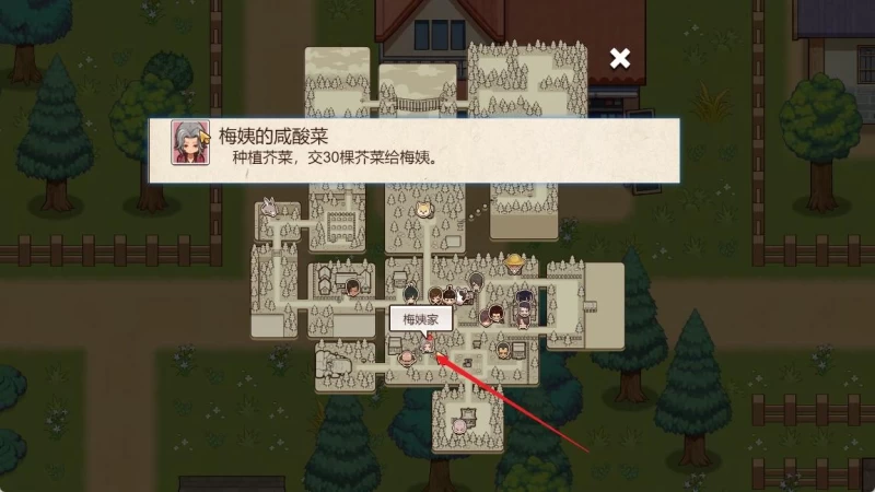 After completing Feiying's quest, go to Aunt Mei's house to accept the mustard greens quest. Buy at least six seeds, then submit them to complete her affection storyline—Aunt Mei's route ends.